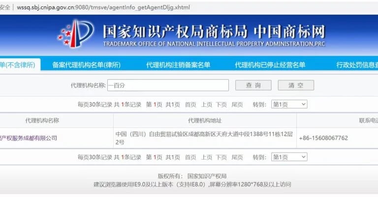 How to verify the identity of a Chinese trademark agency, like us on the web page of CNIPA?